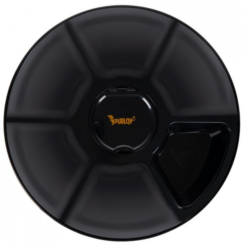 Miska má 6 komôr s objemom každej 150 ml. 5 misiek je zakrytých a jedna je otvorená. Systém časovaného otvárania otvára jednu potravinovú komoru v určitom čase pri otočení veka.