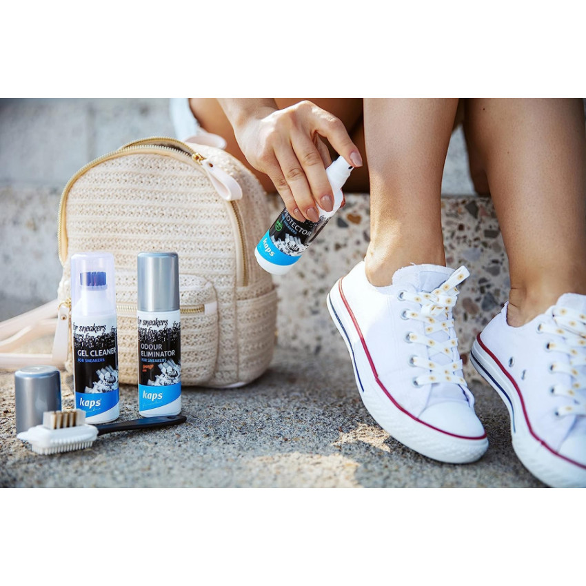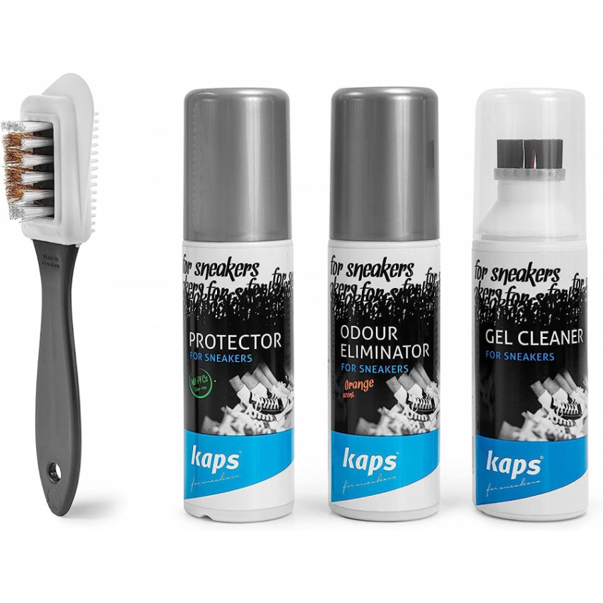 Súprava obsahuje všetko potrebné pre dokonalú starostlivosť o vaše tenisky. Sada Sneakers Gel Cleaner 100 ml zabezpečuje dokonalé čistenie, Sneakers Protector 100 ml chráni pred vlhkosťou a nečistotami, zatiaľ čo Sneakers Odour Eliminator 100 ml odstraňuje nepríjemné pachy.