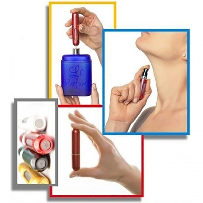 Vďaka tomuto rozprašovaču už so sebou nemusíte nosiť celý veľký flakón parfému a báť sa, že ho rozbijete alebo stratíte. Jednoduché plnenie za pár sekúnd - stačí priložiť špičku parfumu s odpojenou hlavicou na spodok rozprašovača a niekoľkokrát nafúknuť.
