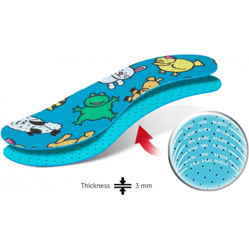 Set 6 párov detských pohodlných, aromatizovaných a hygienických stielok dávajúce pocit sviežosti. Jemná tkanina s perforáciou zaisťuje dostatočnú cirkuláciu vzduchu pod chodidlom a vrstva absorbčnej latexovej peny poskytuje pohodlie pri chôdzi. Stielky s príjemnou arómou chránia chodidlá pred tvorbou nepríjemného zápachu v obuvi. Možnosť ručného prania pri teplote 30°C.