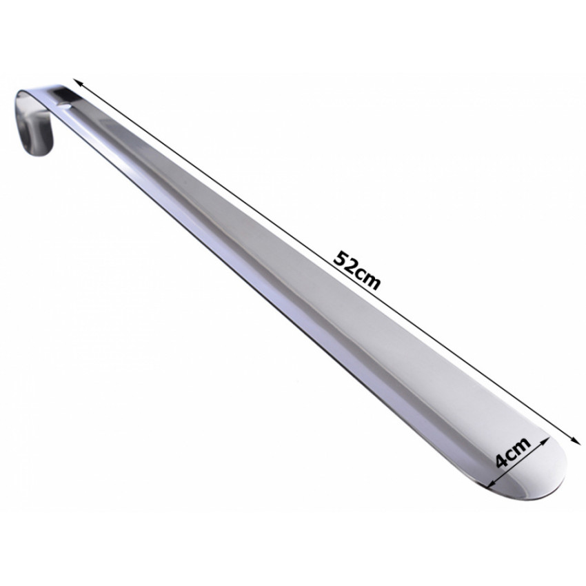 Pevný kovový obuvák s dĺžkou 52 cm z nehrdzavejúcej ocele zabezpečuje jednoduché a bezpečné obúvanie topánok. Profilovaný háčik umožňuje pohodlné zavesenie. Odolný a univerzálny pomocník pre každú domácnosť.