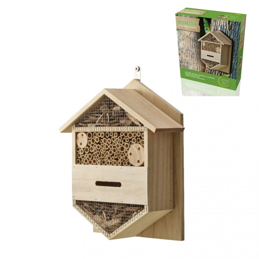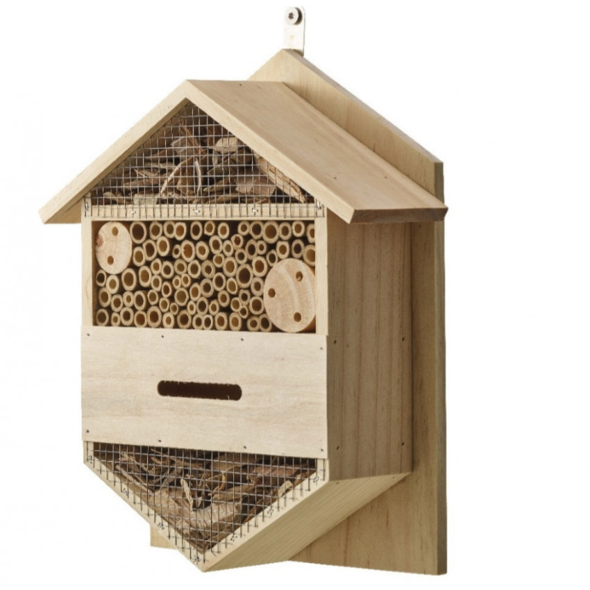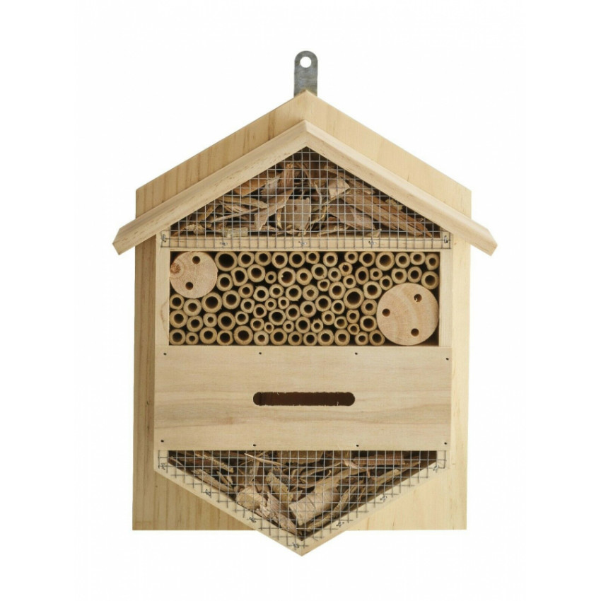 Tento domček, hotel pre hmyz je ideálny ako hniezdisko a zimovisko pre včely a iný hmyz. Vhodné na záhradu, terasu alebo balkón so suspenziou. Domček je impregnovaný vôňou lesa aby prilákal hmyz na ubytovanie.
