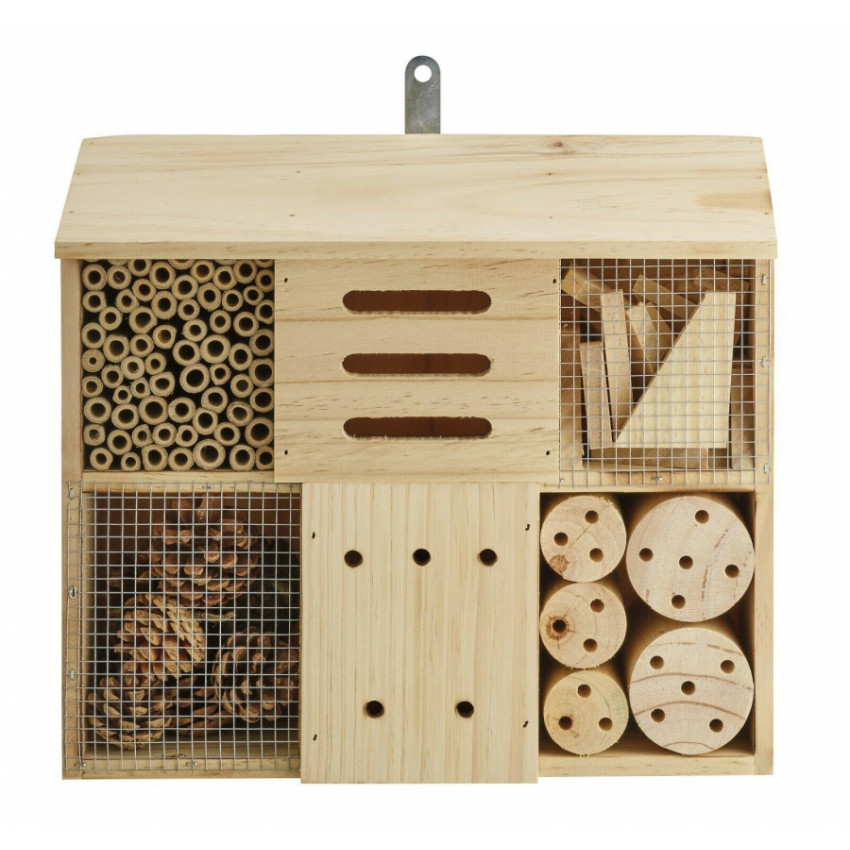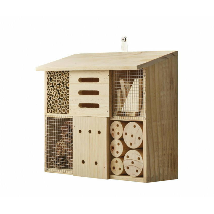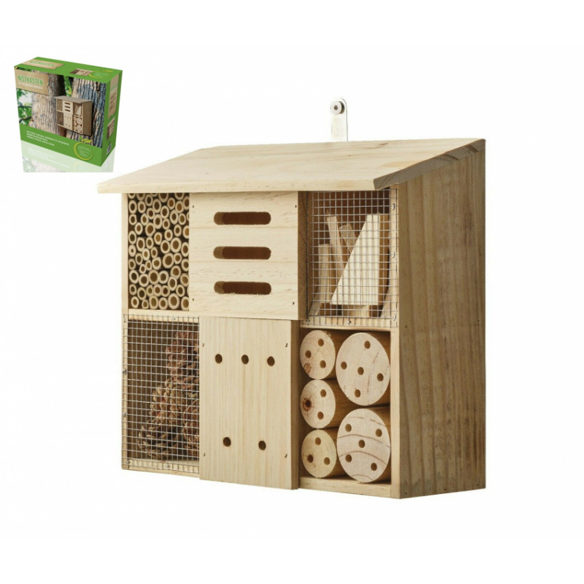Tento domček, hotel pre hmyz je ideálny ako hniezdisko a zimovisko pre včely a iný hmyz. Vhodné na záhradu, terasu alebo balkón so suspenziou. Domček je impregnovaný vôňou lesa aby prilákal hmyz na ubytovanie.