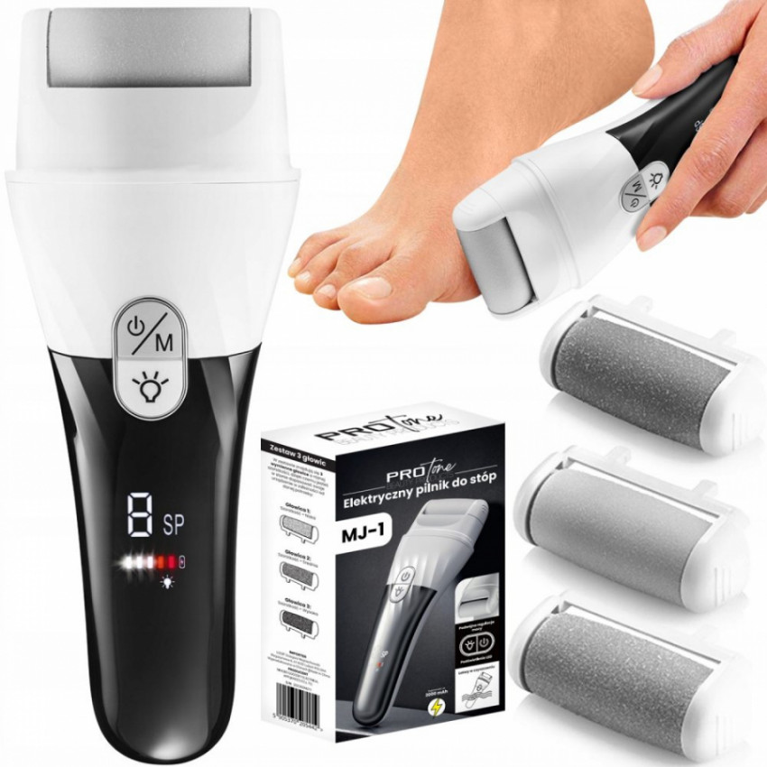 Vďaka inovatívnemu elektrickému prístroju na starostlivosť o chodidlá bude pokožka na chodidlách hladká a jemná na dotyk. Zbavte sa vrstvy zrohovatenej epidermy, kurích ôk, mozoľov atď. Procedúra vykonaná naším prístrojom je oveľa rýchlejšia a efektívnejšia ako pri použití bežného pilníka na chodidlá.