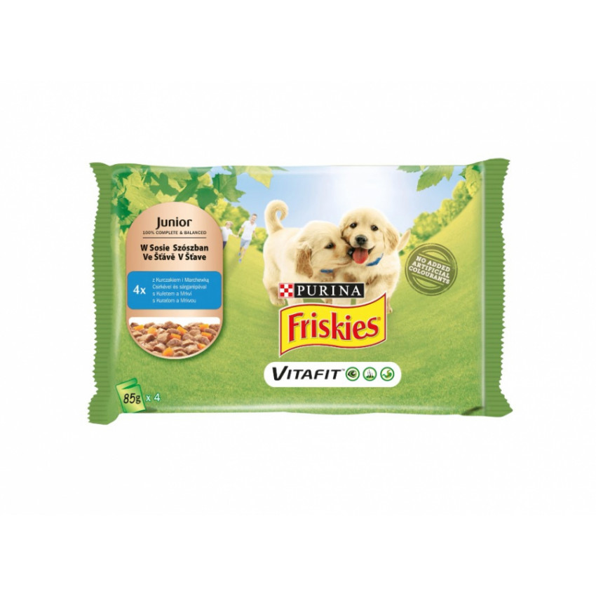 PURINA FRISKIES pre psa plného vitality! Už viac ako 80 rokov PURINA FRISKIES pomáha udržať generácie rodinných psov šťastných a plných vitality. Milujete svojho psa pre radosť, ktorú prináša do Vašej rodiny, a preto si chcete byť istý, že je vždy spokojný, šťastný a plný vitality! Z tohto dôvodu veterinári a špecialisti na výživu spoločnosti PURINA® vyvinuli PURINA® FRISKIES® s kuraťom a mrkvou v šťave, chutnú kompletnú receptúru, ktorá poskytuje Vášmu psovi vitamíny a ostatné výživné látky, ktoré potrebuje k zdraviu.