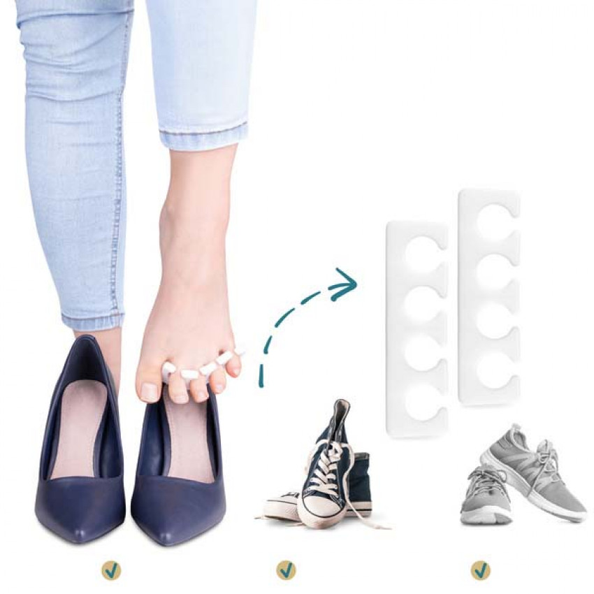 Áno, naše oddeľovače prstov sú dostatočne tenké a pružné, aby sa prispôsobili akémukoľvek typu obuvi.