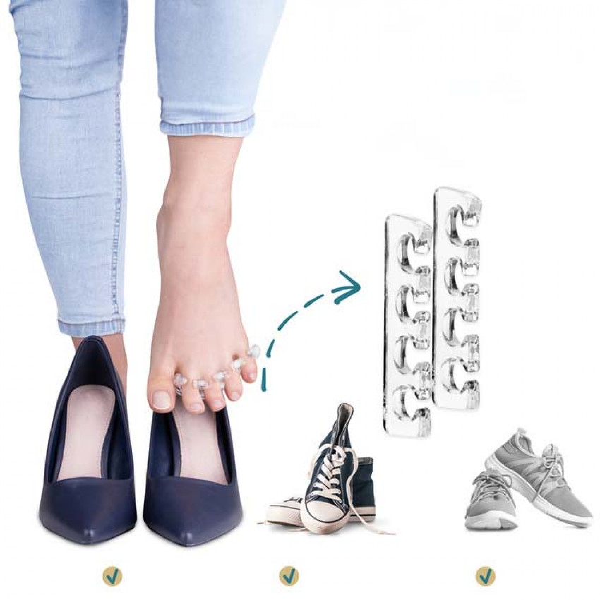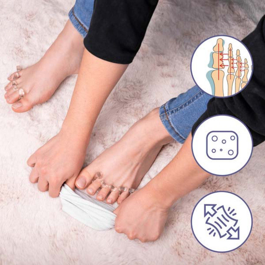 Zbavte sa bolesti a diskomfortu spôsobených prekrývajúcimi sa prstami alebo hallux valgus s týmto univerzálnym riešením. Navrhnuté tak, aby narovnávali a udržiavali vaše prsty v správnej polohe, zabezpečujú celodenné pohodlie.