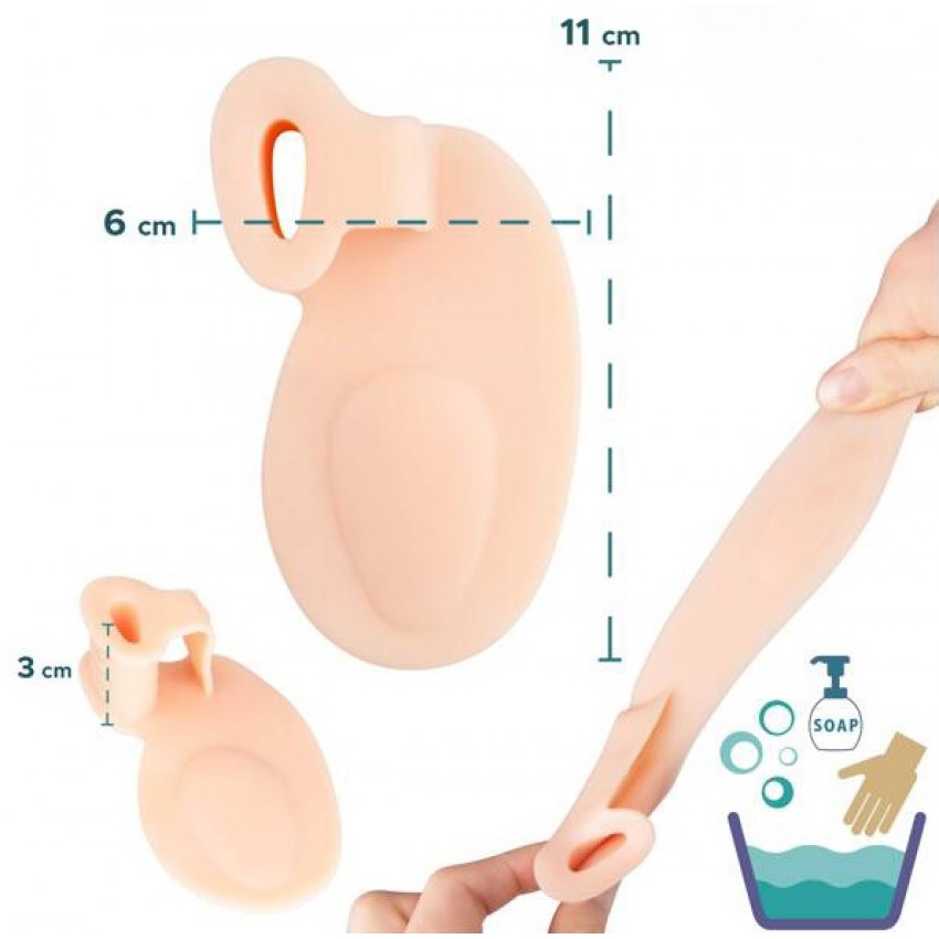 Klinový separátor je vyrobený z mäkkého a pružného materiálu, ktorý sa dokonale prispôsobuje kontúram Vašej nohy. Integrovaná gélová podložka nielen že chráni pred tvorbou mozoľov a kurích očí, ale aj tlmí a zabezpečuje správne umiestnenie metatarzálnych kostí. Tento klin je neoceniteľným pomocníkom pri náprave polohy palca a prednej časti chodidla.