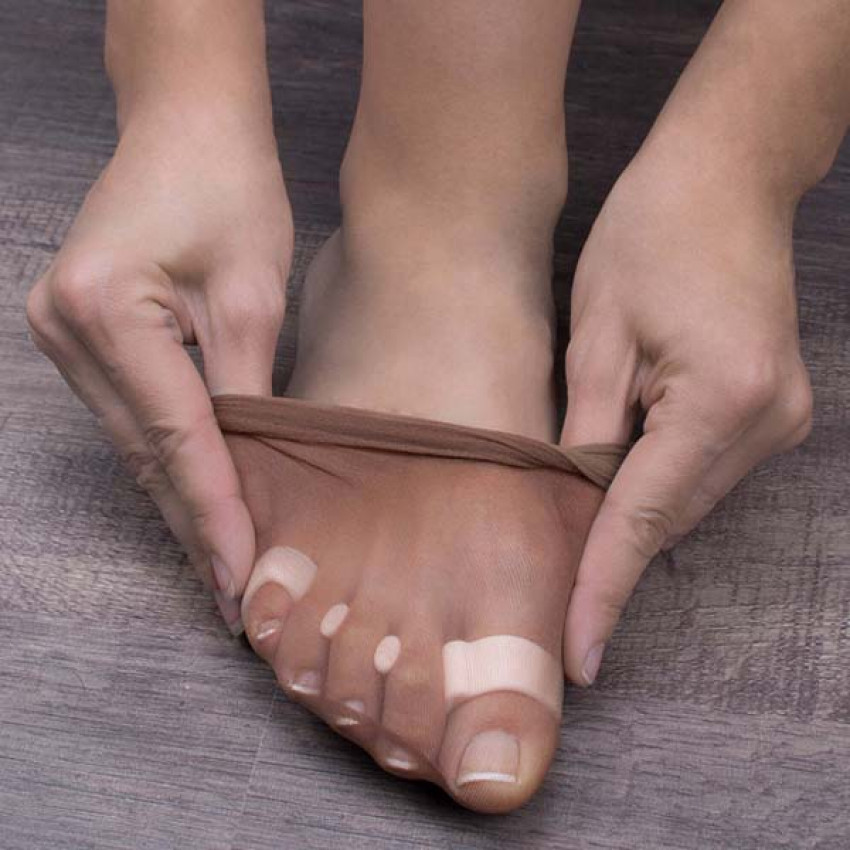 Oddeľovače sa jednoducho nasadzujú na prsty na nohách a môžu sa nosiť po celý deň.