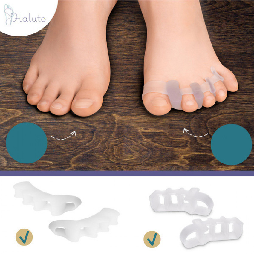 Gélový oddeľovač prstov Haluto je určený pre ľudí trpiacich hallux valgus, poskytujúci úľavu a korekciu prekrývajúcich sa alebo kladivkových prstov na nohách. Sada obsahuje 3 páry oddeľovačov (6 kusov), ktoré sú vyrobené z mäkkého a pružného gélu.