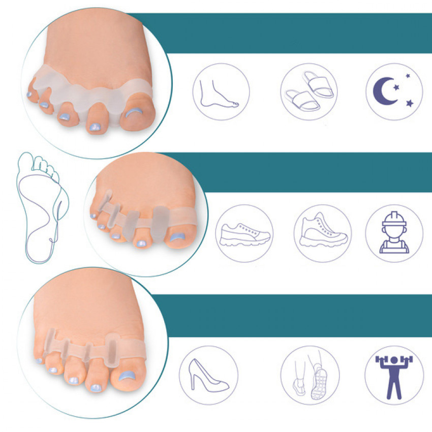 Oddeľovače sú určené pre ľudí trpiacich hallux valgus a pre tých, ktorí majú problémy s prekrývajúcimi sa alebo kladivkovými prstami na nohách.