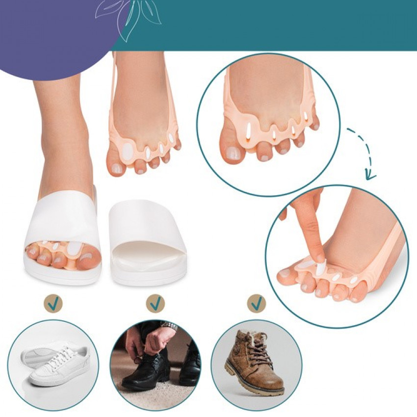Určené pre ľudí trpiacich deformáciami a bolesťami chodidiel. Umožňuje nosenie na všetkých piatich prstoch. Separátory sú vybavené pásikom, ktorý po umiestnení na pätu zvyšuje ich funkčnosť a stabilitu pri používaní. Pásy účinne zabraňujú odreninám a dokonale chránia prednú časť chodidla. Ľahko sa prispôsobia tvaru chodidla, účinne absorbujú tlak a poskytujú úľavu v bolestivej oblasti. Dajú sa nosiť s akýmikoľvek topánkami.