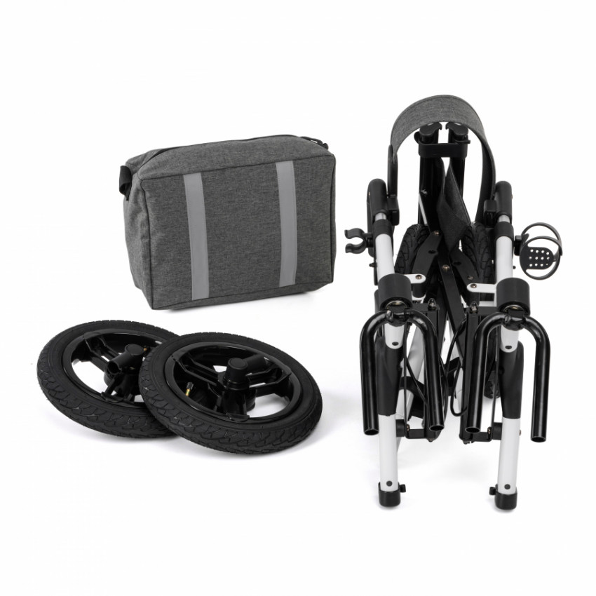 Skladacie a vyrobené z hliníkového rámu, toto chodítko je vybavené veľkými nafukovacími kolesami s priemerom 12'' a výškovo nastaviteľnými rukoväťami s anatomickými rukoväťami.
