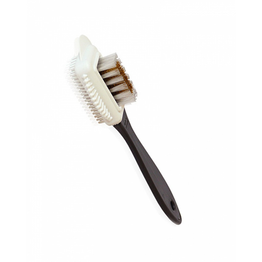 Šetrné čistenie nubukovej a semišovej obuvi zabezpečuje kefa s nylónovo mosadzným vlasom. Výstupky na hlave kefy účinne odstraňujú nečistoty z podrážky, ako sú kamienky a hlinu.