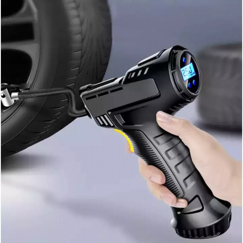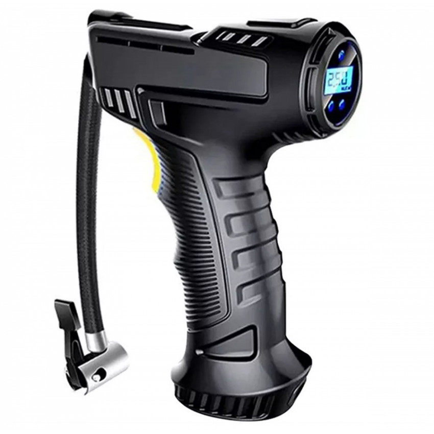 Kompaktný, bezdrôtový kompresor na hustenie pneumatík. Poháňané vstavanou nabíjateľnou batériou, nabíjanou káblom USB (súčasťou balenia). Pohodlná rukoväť uľahčuje pumpovanie kolies a čitateľný LCD displej uľahčuje nastavenie vyhradeného tlaku vzduchu a výmenu jednotky. Pohodlná, flexibilná hadica a prídavné, vymeniteľné koncovky (3 kusy) uľahčujú prácu s prístrojom.