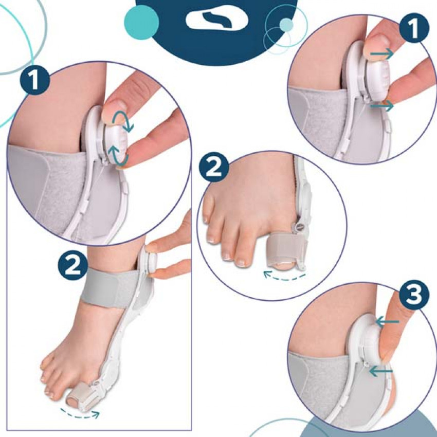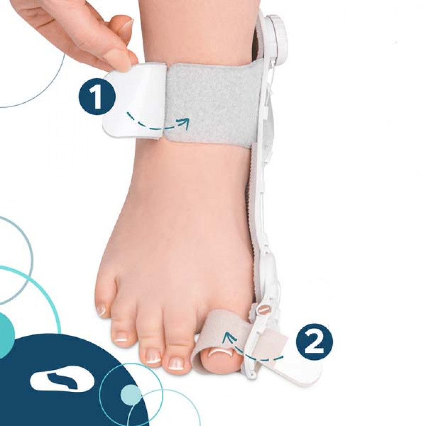 Ortéza pomáha korigovať vyrovnanie palca nohy. Hodí sa na ľavú nohu. Môže sa používať vo dne aj v noci - v pokoji alebo počas spánku.