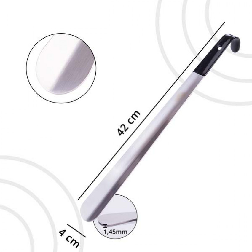 Tento kovový obuvák kombinuje odolnosť s estetickým vzhľadom. Svojou dlhou rukoväťou a pevnou konštrukciou zaručuje jednoduché obúvanie bez zbytočného ohýbania alebo namáhania.