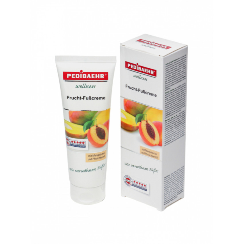 Prinášame vám Pedibaehr Ovocný krém na nohy - Broskyňový zázrak, luxusný hydratačný krém, ktorý vašim nohám poskytne tú najlepšiu starostlivosť. Tento krém kombinuje účinné prírodné zložky, ako sú maslo z manga, olej z broskyňových kôstok, kyselina hyalurónová, glycerín a urea, aby zabezpečil optimálnu vlhkosť a výživu pre suchú a popraskanú pokožku. Jeho bohatá textúra a očarujúca vôňa vytvárajú dokonalý relaxačný zážitok, zatiaľ čo aktívne zložky zanechávajú pokožku hladkú, jemnú a pružnú.