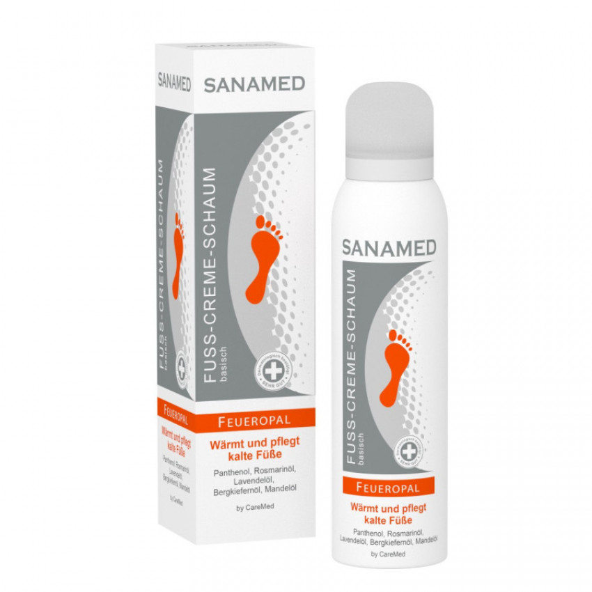 SANAMED Feueropal je nová krémová pena značky CareMed na studené nohy. Svojimi aktívnymi zložkami, ktoré aktivujú teplo, stimuluje teplotné receptory pokožky a za pár minút zabezpečí niekoľko hodinový príjemný pocit tepla. Prírodné éterické oleje zrýchľujú krvný obeh a tým podporujú tepelný efekt. Zároveň sa stará a dodáva namáhanej pokožke primeranú vlhkosť. Pena súčasne hydratuje a vyživuje stresovú kožu. Či už lyžovanie, zimná turistika alebo večeri v posteli, s penou SANAMED Feueropal sú chladné nohy minulosťou.