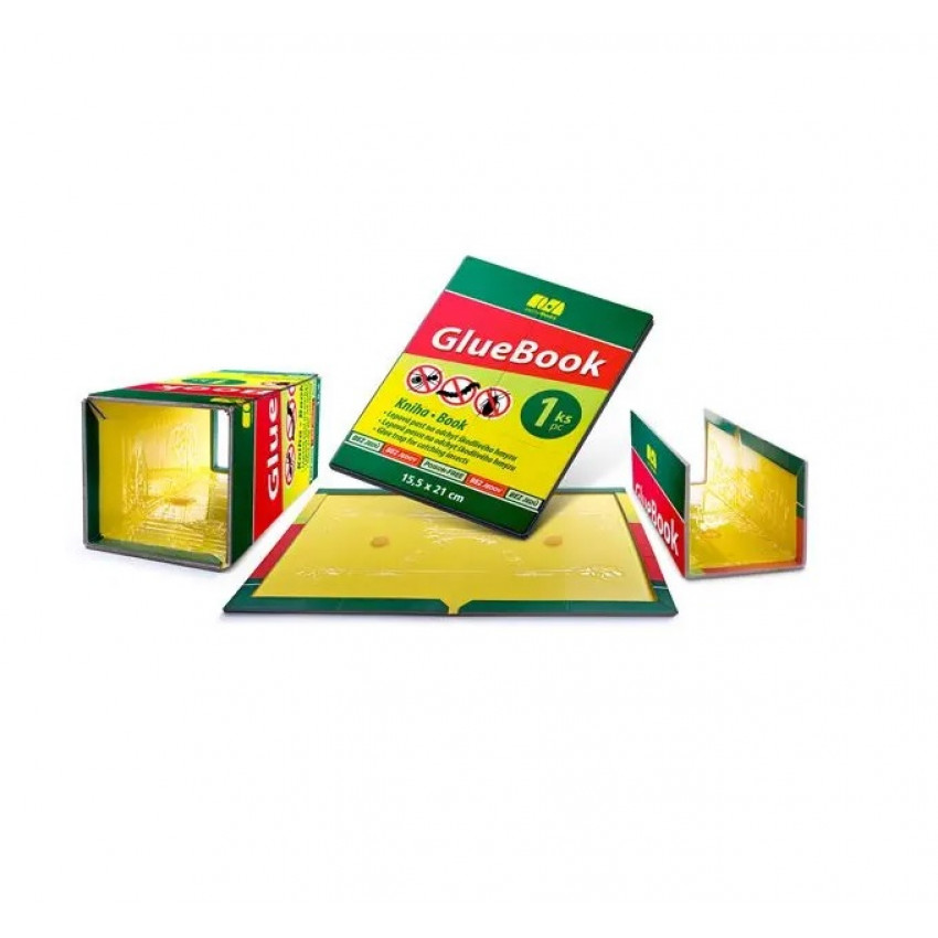 GlueBook funguje ako lepová pasca, ktorá efektívne chytá a zneškodňuje lezúci hmyz.