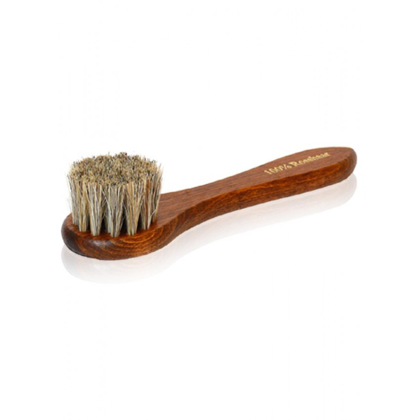 Klasická pomôcka pre ľudí, ktorí sa starajú o svoju obuv. Uľahčí prvotné nanášanie krému na obuv. Štetiny sú vsadené do elegantnej lakovanej rukoväte so zlatým nápisom "100% Rosshaar", čo dodáva kefke exkluzívny vzhľad.