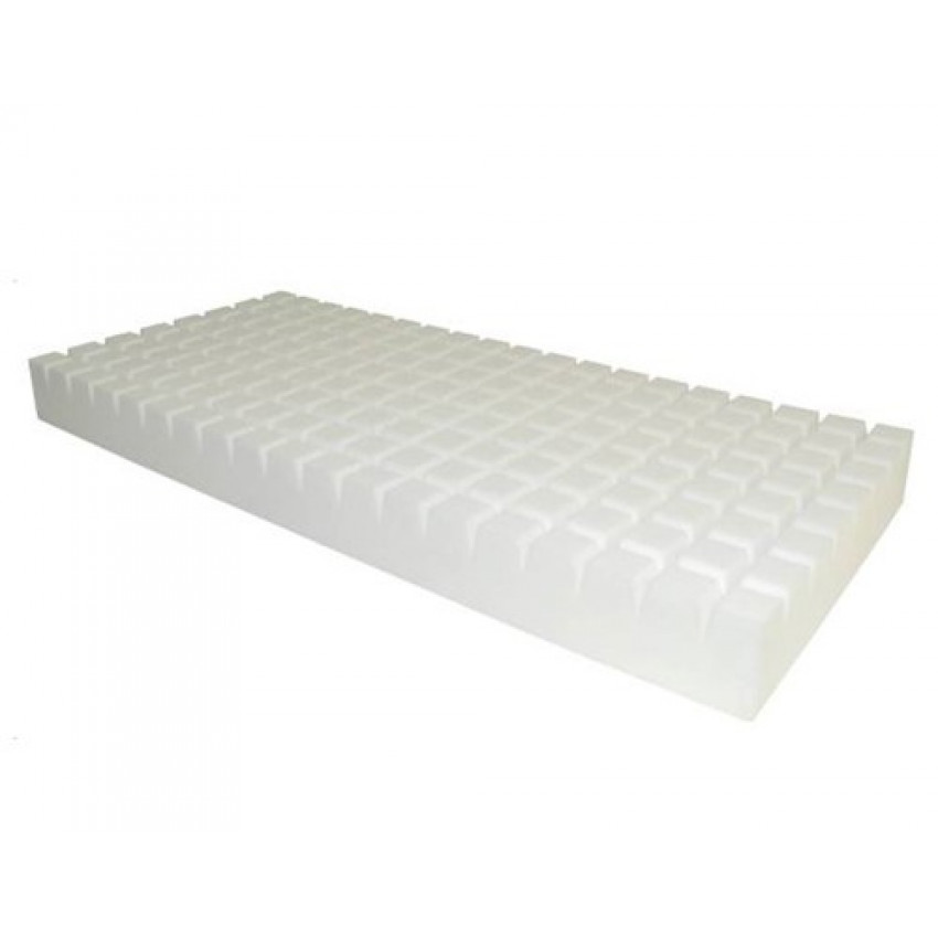 Vaflový matrac s jedinečnou štruktúrou pre lepšiu cirkuláciu vzduchu a zníženie tlaku na telo. Ideálny pre viacdielne postele a osoby s rizikom preležanín. Voliteľný poťah: vodeodolný alebo bavlnený. Rozmery 2000x900x100 mm.