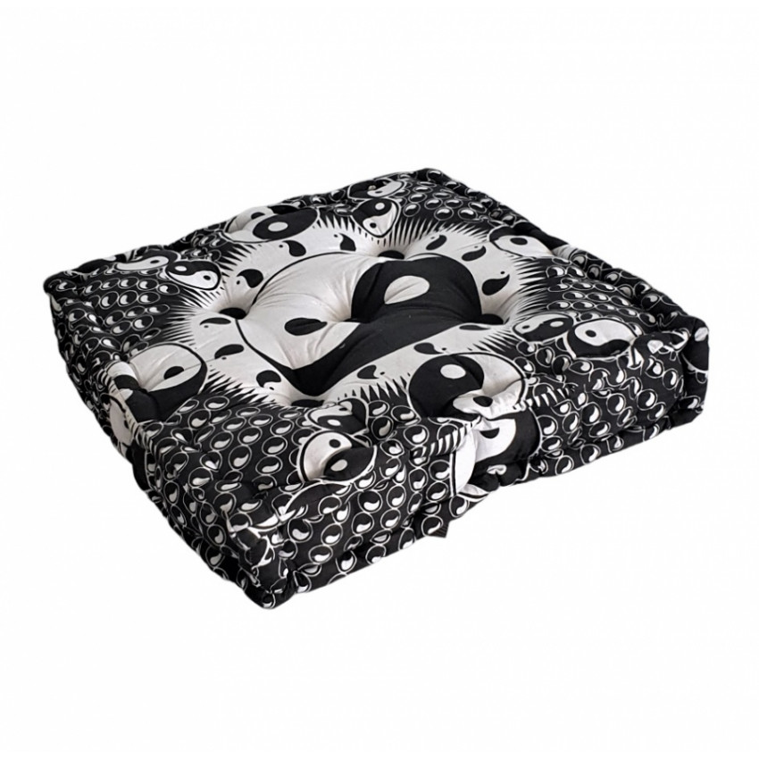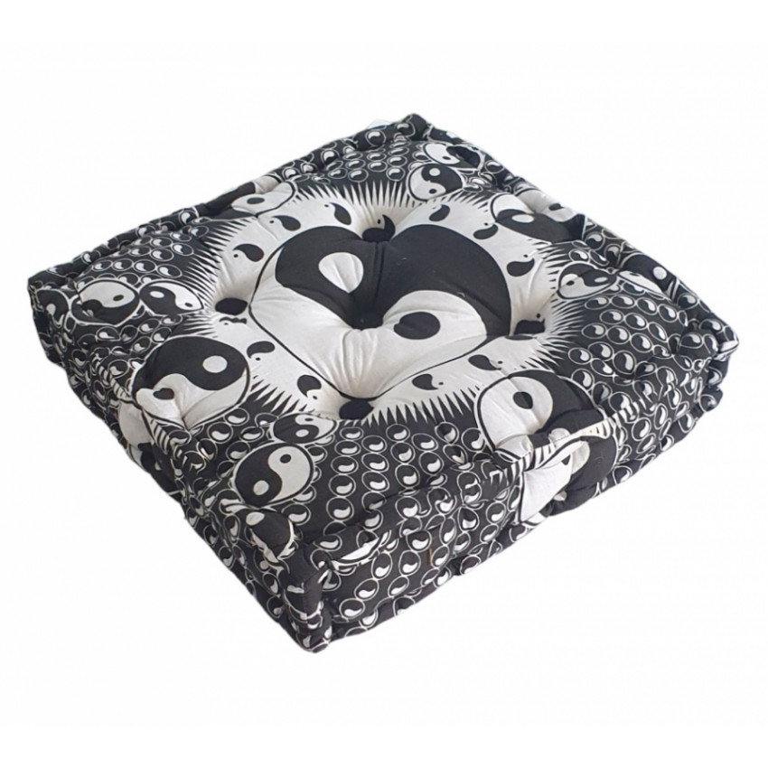 Podsedák je zakončený prídavným úchytom na boku. Tento meditačný podsedák má krásnu čiernobielu potlač zobrazujúcu jin a jang. Preto je vhodný najmä pre ľudí, ktorí milujú meditáciu a relaxáciu. Vnesie do vašej izby útulnú atmosféru.