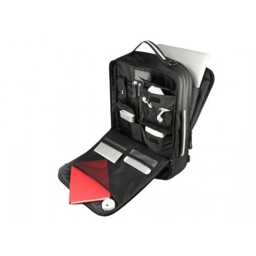 S 3 priestrannými priehradkami na zips, z ktorých hlavná má zámok na zips, tento batoh chráni vaše veci pred zlodejmi. Unikátny je výstupom pre slúchadlá a zabudovaným portom USB, čím sa stáva mobilnou multimediálnou stanicou.
