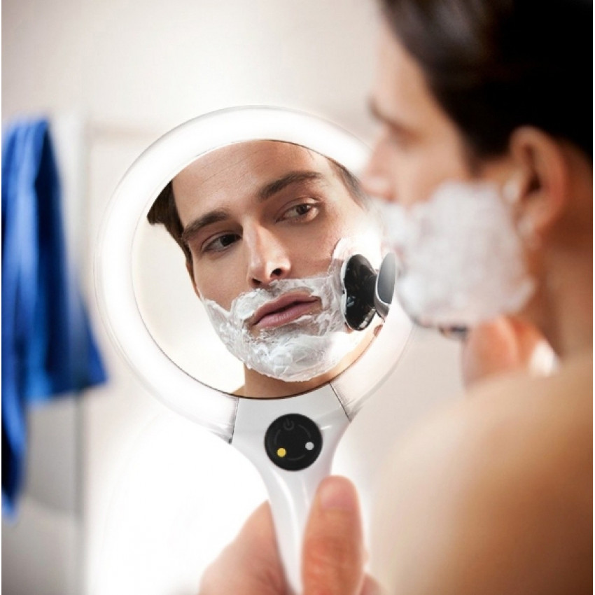 Predstavujeme Vám obojstranné kozmetické zrkadlo s jedinečnou funkciou osvetlenia, ktorá Vám umožní prispôsobiť nalíčenie rôznym podmienkam.