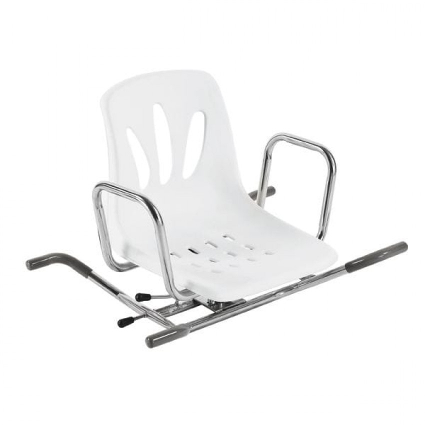 Otočná sedačka na vaňu je ideálne riešenie pre seniorov a ľudí, ktorí nedokážu dlho, alebo vôbec stáť pri sprchovaní. Otočná sedačka umožňuje používateľovi absolútne bezpečný vstup do vane. Sprchovanie vo vani jednoduchým posadením na sedačku, ktorá je otočená kolmo na vani. Sedačka sa otáča o 360° a môže byť zablokované na mieste každých 90° pomocou jemnej páčky. Po pustení páčky sedačka zostane zafixovaná a samovoľne sa nepohne a neotáča. Je veľmi stabilná vďaka gumovým nožičkám a 2 stabilizačným doskám.