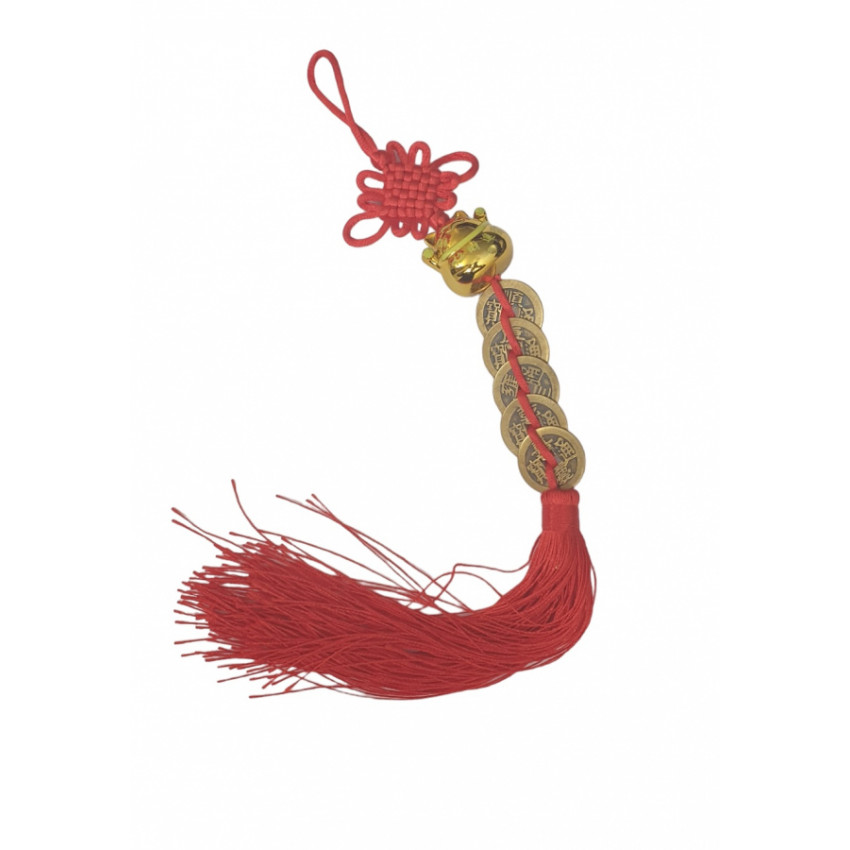 S červenou šnúrkou a uzlom pre šťastie, päť čínskych mincí visiacich na nej spolu s mačkou šťastia Maneki Neko prinesie dobrú energiu pre získavanie a udržanie bohatstva a prosperity.