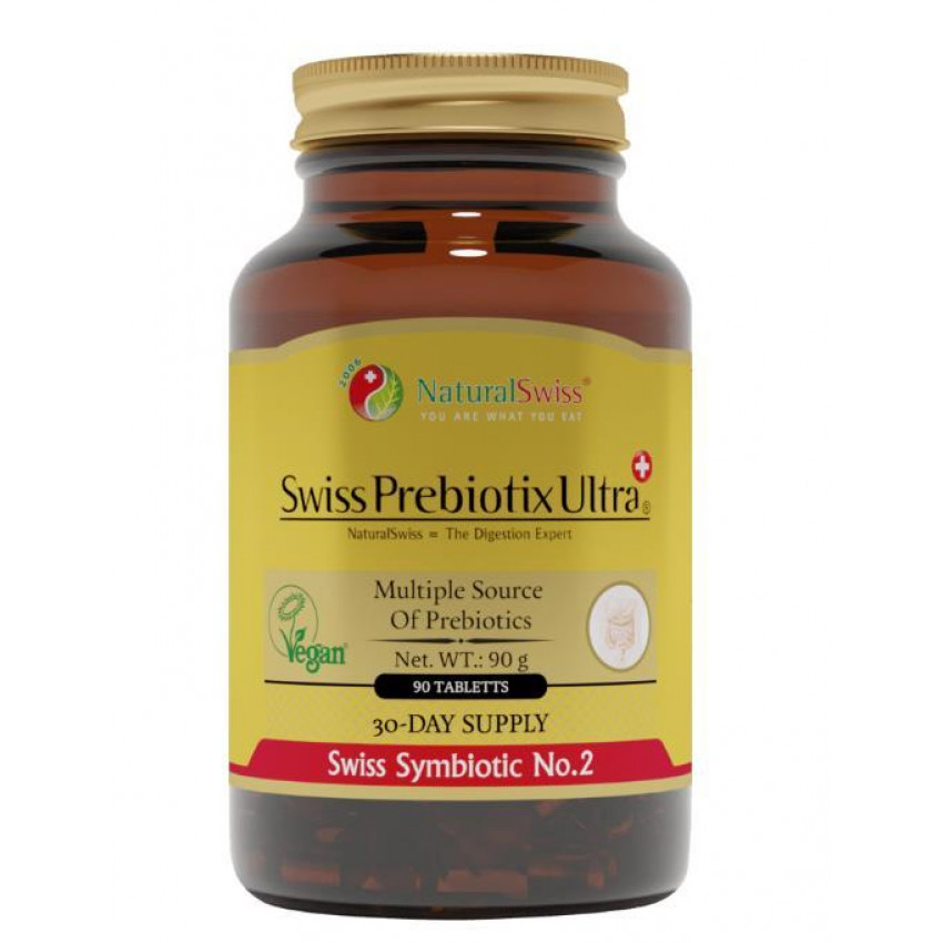 Swiss Prebiotix Ultra je kvalitný prebiotický doplnok výživy s bohatým obsahom frukto-oligosacharidov, slúžiaci ako potrava pre prospešné baktérie. Okrem 4 druhov prebiotických kmeňov, ktoré obsahuje, obsahuje aj také zložky čisto rastlinného pôvodu, ktoré vyživujú zdravú črevnú flóru a podporujú účinky probiotík. Tablety, ktoré sa rozpúšťajú v črevách, môžu konzumovať aj osoby dodržiavajúce vegetariánsku a vegánsku stravu. Neobsahuje žiadne prídavné látky, pšenicu, kofeín, sóju, kukuricu, cukor, vajcia a mlieko. Ďalej neobsahuje ani konzervanty, farbivá a GMO.