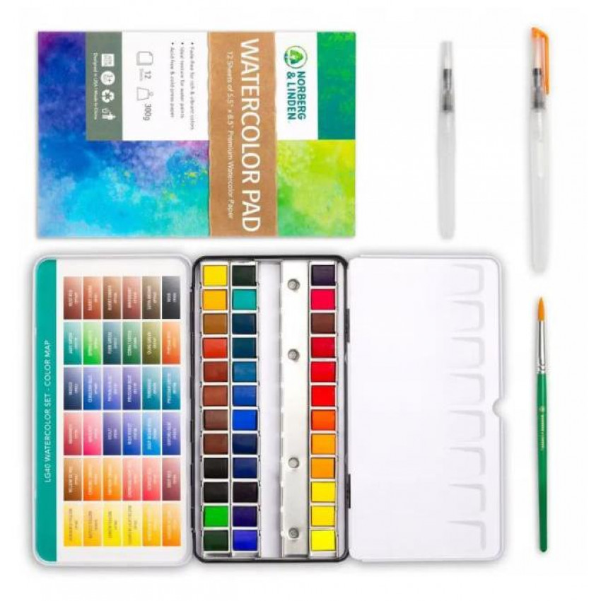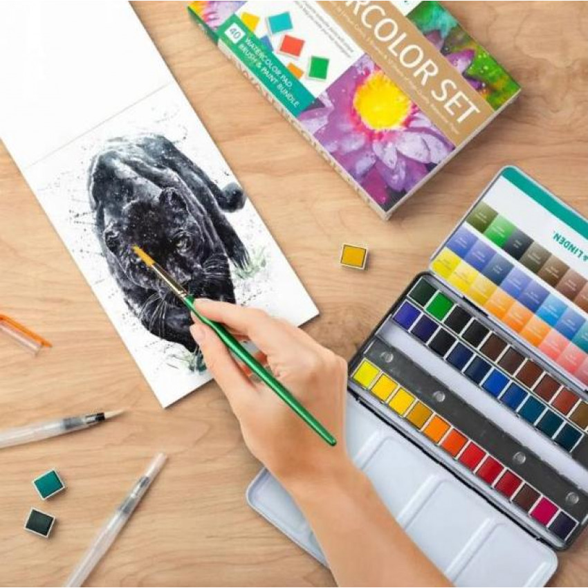 Prémiová sada na akvarelové maľovanie je ideálna pre začiatočníkov aj profesionálnych výtvarníkov. Obsahuje 36 žiarivých akvarelových farieb, drevený štetec, dva plniace vodné štetce a 12-stranový blok profesionálneho 300g akvarelového papiera.