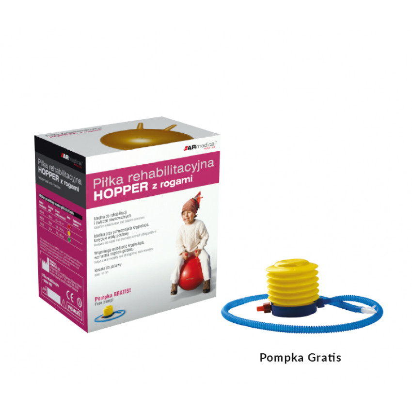 Rehabilitačná lopta HOPPER pre deti je určená na korekciu nesprávneho držania tela, v terapii na zlepšenie telesnej kondície a motoriky, na posilnenie chrbtových svalov, na zlepšenie pohyblivosti kĺbov a na pomoc pri neurologických ochoreniach.