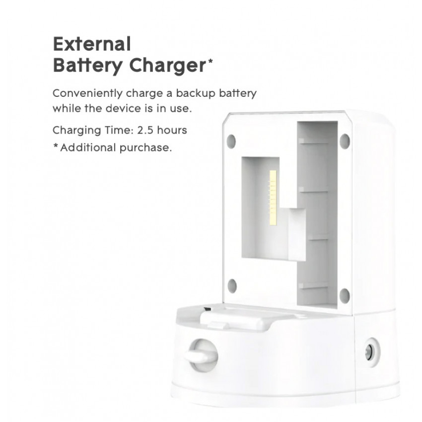 Efektívne a rýchle nabíjanie batérií kyslíkového koncentrátoru zabezpečí táto kompaktná a ľahká nabíjačka.
