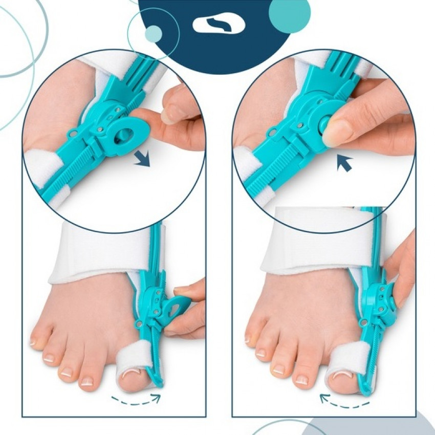 Znižuje bolesť spojenú s deformitou kĺbu a podporuje proces obnovenia správnej polohy palca na nohe. Je univerzálna, vhodná pre ľavú aj pravú nohu, s rýchlym nastavením a zabezpečuje stabilitu a pohodlie pri používaní.