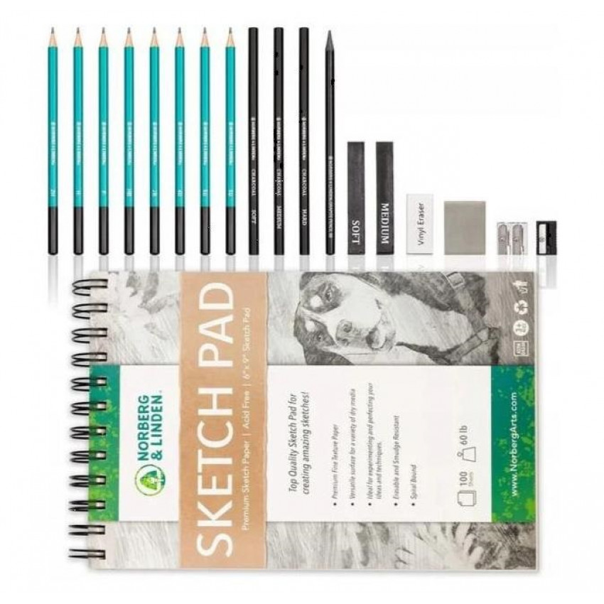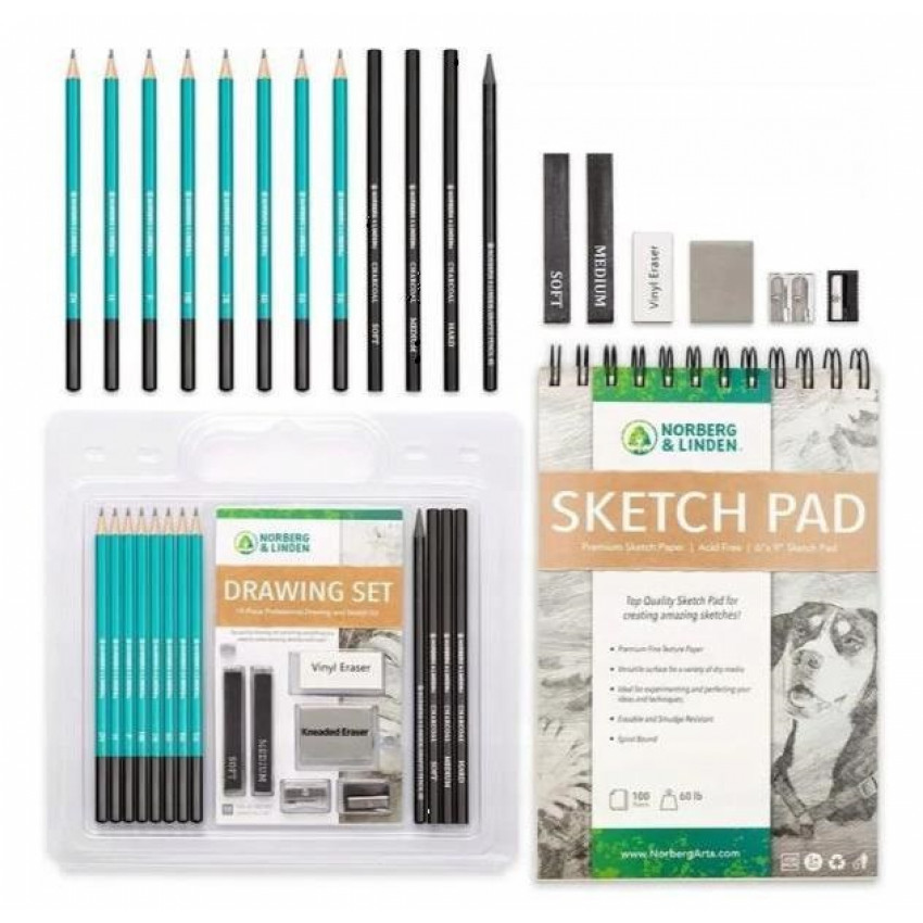 Profesionálna sada na kreslenie pre nováčikov alebo skúsených skicárov. Začnite kresliť hneď, ako otvoríte balík. Sada so 100 stranovým skicárom strednej gramáže, profesionálnym skicárskym papierom bez šmúh, pripraveným na akciu. Sada obsahuje presne a vopred nabrúsené ceruzky s protišmykovou úpravou.