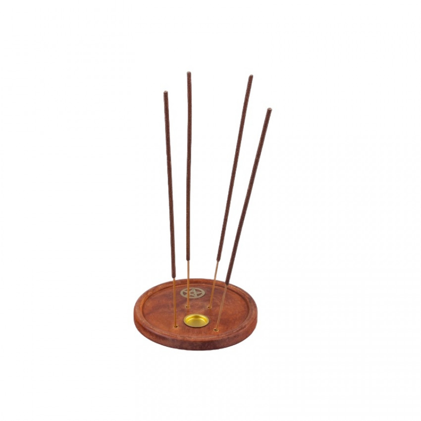 Vyrobený z kvalitného dreva, s kovovým zlatým vykladaným symbolom, tento stojan je ideálny na pálenie vonných kužeľov a tenších vonných tyčiniek, ako sú tibetské, nepálske, japonské, alebo akékoľvek klasické vonné tyčinky.