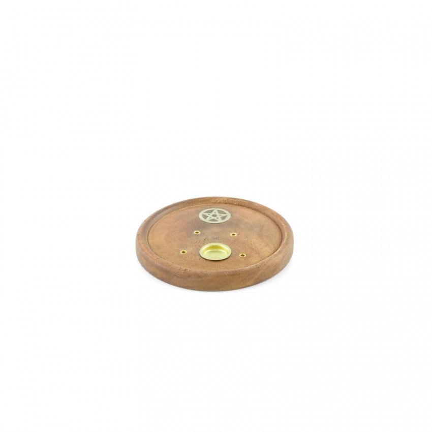 Stojan na vonné kužele a tyčinky s kovovým zlatým vykladaným symbolom. Stojan je vhodný na pálenie vonných kužeľov a tenších vonných tyčiniek, ako tibetské, nepálske, japonské, či akékoľvek klasické vonné tyčinky. Stojan je vyrobený z kvalitného dreva.