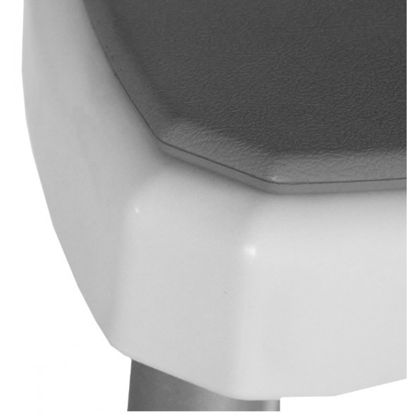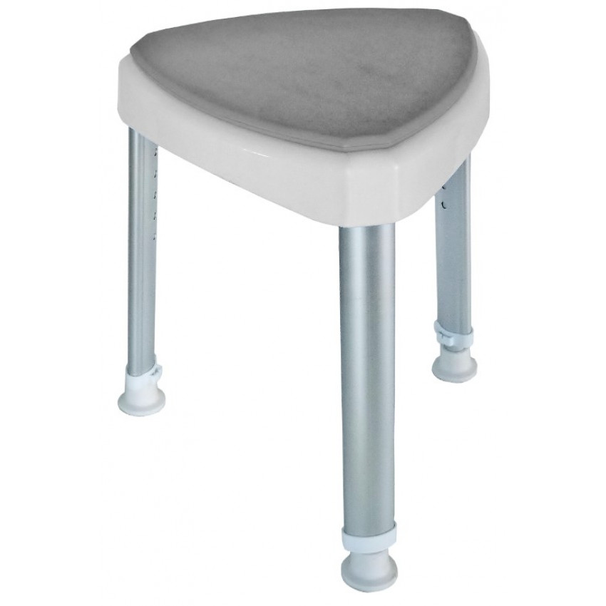Výškovo nastaviteľná sprchová stolička. Praktické a estetické riešenie, zvyšuje pohodlie pri každodenných hygienických činnostiach. Sprchová stolička trojuholníkového tvaru vybavená mäkkým prekrytím, ktoré zvyšuje pohodlie pri sedení. Vďaka trojuholníkovému tvaru ušetríte miesto v kúpeľni alebo v sprche.