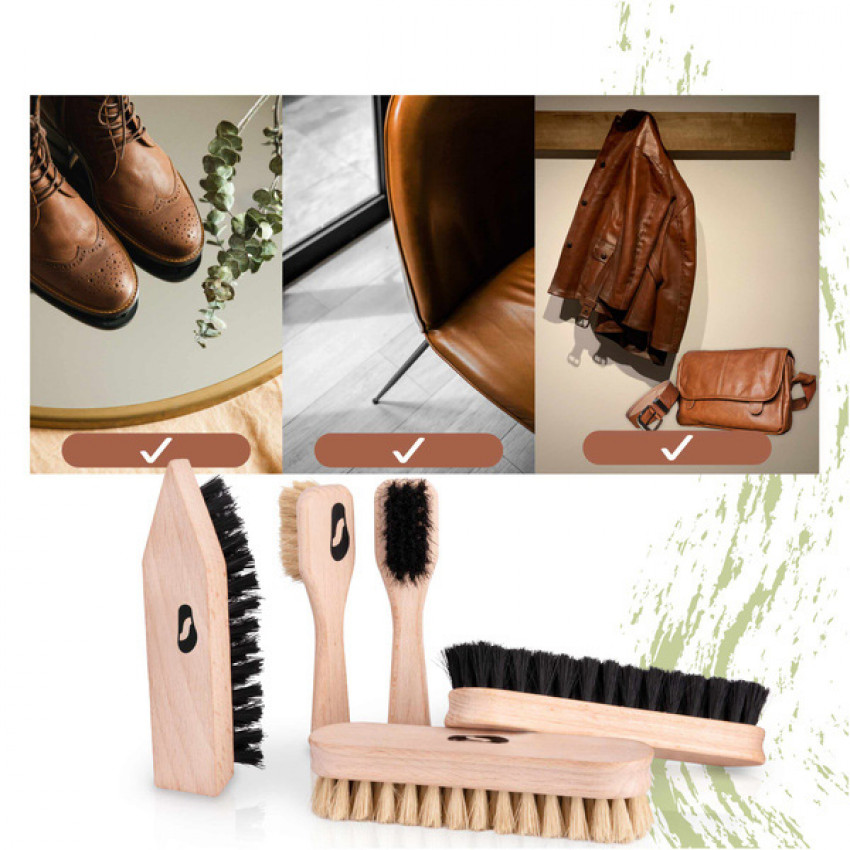 Každá kefa v súprave má svoje špecifické použitie. Jemné štetiny sú určené na leštenie a čistenie, husté štetiny slúžia na nanášanie krémov a pást, a tvrdé štetiny umožňujú odstraňovanie hrubých nečistôt.