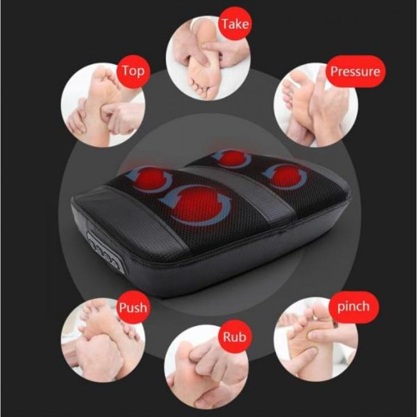 Tento masážny prístroj má jedinečný tvar, ktorý pohodlným spôsobom upokojuje boľavé chodidlá, členky a lýtka. Zvyšuje prekrvenie chodidiel, uvoľnenie a pohodlie pre celé telo. K dispozícii sú 2 smery masáže, 3 stupne nastavenia sily. Funkcia infračerveného vyhrievania môže spĺňať rôzne potreby, takže vaše telo má rôzne pohodlie. Tento masážny prístroj na nohy môže priamo masírovať body únavy pomocou plne automatických valčekov, silnej sily, pohodlnej masáže.
