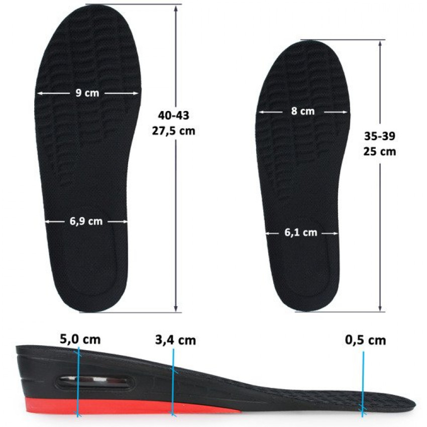 Zvýšte svoju výšku a sebavedomie s týmito vynikajúcimi vložkami, ktoré umožňujú zvýšenie výšky topánok o 4 až 5 cm podľa vašich preferencií.