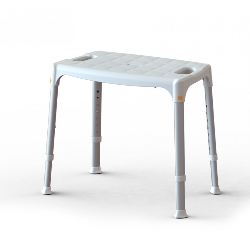 Stolička má protišmykové gumené násadce a jej použitie vo vani i v sprchovom kúte je maximálne bezpečné. Trvácna stolička do sprchy unesie až 120 kg a odoláva opakovanému použitiu pri sprchovaní. Na plastovom sedadle sa nachádzajú odtokové otvory, vďaka ktorým sa na stoličke nenahromadí voda, a tak sa zníži riziko pošmyknutia. Stolička pre sprchovanie je ľahká, vďaka rúčkam na bočných stranách ju ľahko prenesiete a v kúpeľni nezaberá veľa miesta. Výška stoličky do vane sa dá podľa potreby nastaviť 39-54 cm od zemi.